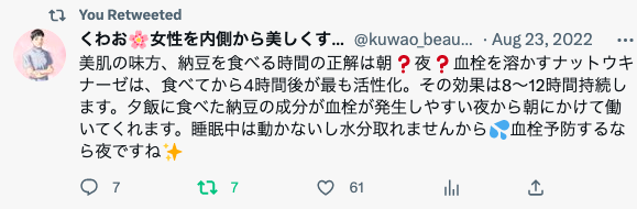 私は普段ツイートで納豆をお勧めしています。